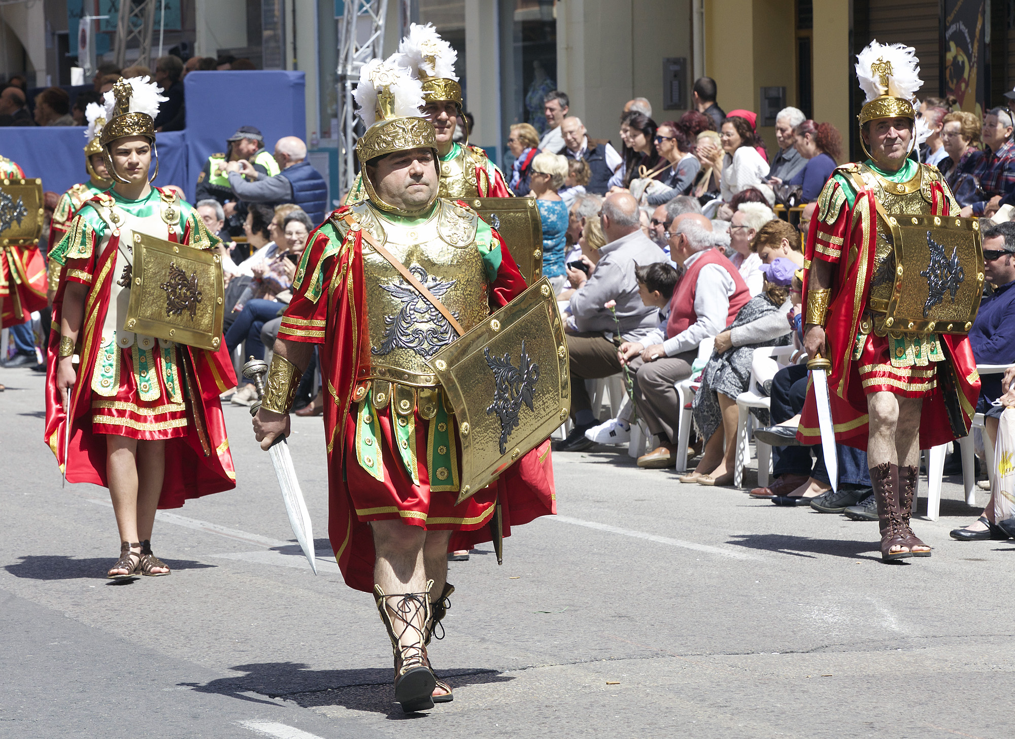 Nu kommer de romerska soldaterna som tog livet av Jesus. De ser visserligen rätt krigiska ut men uppsynen är mera avspänd än hotande och deras eleganta mundering, med fjäderprydd huvudbonad och glänsande sköldar, stämmer inte riktigt överens med kroppsspråket. Men de gör sitt bästa för att fortfarande se tuffa ut.